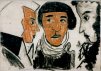 Mozart, Salieri, Puschkin, 1969, Kohle, Guache, Aquarell