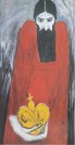 Mein Rasputin ist riesig, er nimmt den ganzen Raum im Bild ein, an ihm leuchtet ein flammenrotes Hemd, und in der rechten Hand ist die Krone, die er mit starken Fingern umklammert hält. Für mich ist Rasputin das Symbol für vieles. Symbolhaft war sein Leben, symbolhaft auch sein Tod. Die Verschwörer konnten lange nicht mit dieser mächtigen russischen Natur fertig werden. Sie hatten erfolglos auf Rasputin geschossen, ihn zu vergiften versucht, und schließlich ertränkt...